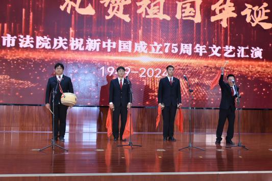 盛世华诞,颂歌献礼。为了热烈庆祝中华人民共和国成立75周年,9月27日下午,全市法院“筑梦灯火万家•礼赞祖国华诞”主题文艺汇演在齐齐齐哈尔市中级人民法院精彩开启。全市法院干警欢聚一堂,用真挚饱满的情感重温燃情岁月、激扬奋进力量,共同抒发对祖国的热爱与祝福。市法院院领导、全市基层法院院长、部分人大代表、政协委员及离退休老干部受邀到场观看演出。