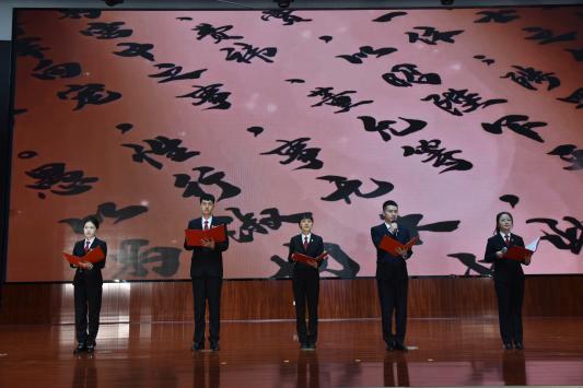 铸法治精魂,养浩然正气。干警高声诵读,五星红旗下,家国永远是心中不灭的信仰。