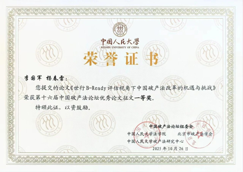 《世行B-READY评估视角下中国破产法改革的机遇与挑战》(李国军、杨春雷)
