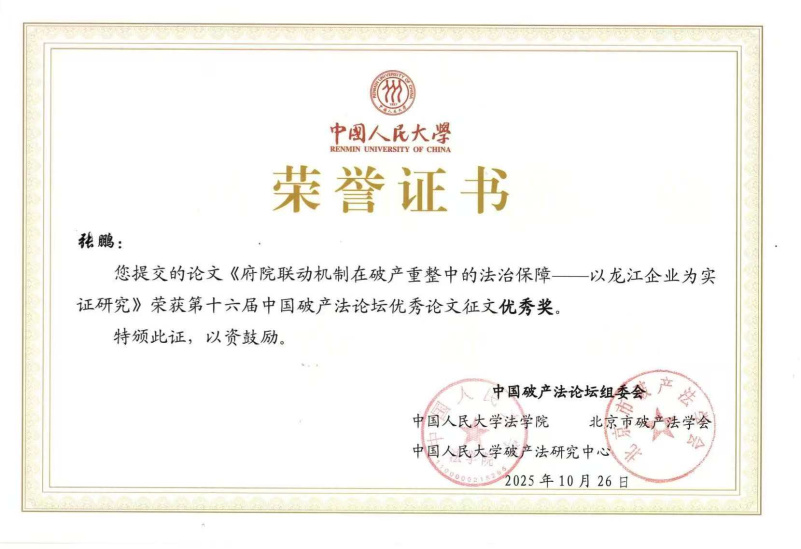 齐齐哈尔法院在第十六届中国破产法论坛上取得的成果,既是齐齐哈尔法院系统长期坚持审判实践与理论研究深度融合、狠抓人才队伍建设的集中体现,更标志着齐齐哈尔法院系统在破产法领域的综合实力迈上新台阶。接下来,齐齐哈尔中院将继续以“三争”晋先为引领,以“三年强院”为抓手,以调查研究促司法审判,为辖区经济社会高质量发展提供更加坚实有力的司法服务和保障。