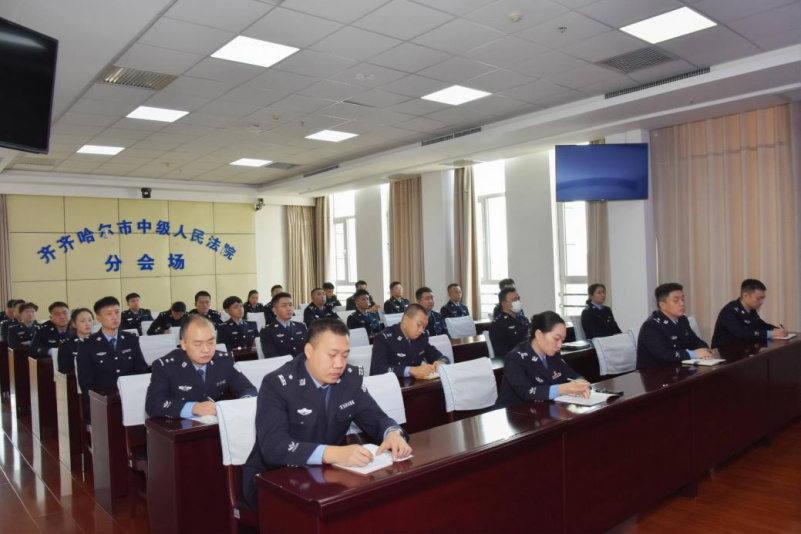 为进一步推进司法警察执法规范化、训练实战化、队伍正规化建设,为人民法院审判执行安全保驾护航,近日,齐齐哈尔市中级人民法院法警支队联合法官学院举办了全市两级法院“鹤法讲堂”警务理论专题讲座。作为全市法院司法警察实战化练兵活动的重要一环,此次培训特别邀请到龙沙公安分局指挥中心副主任付奇作为授课人,市法院及北三区法院司法警察在主会场参训,其余13家基层法院司法警察通过视频连线在分会场同步学习。