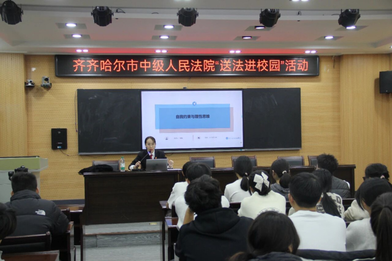 课堂上,主讲法官结合青少年身心发展特点,用通俗易懂的语言、真实典型的案例,围绕“自我约束”与“理性思维”两大核心展开讲解。针对校园暴力这一突出问题,主讲法官以讲述一场行为艺术表演为切入点,通过未成年人打架斗殴的真实案例,普及“非SR思维模型”。从“责任分担”和“自我意识的降低”两个角度,剖析未成年人群体易受煽动和操控的问题,使同学们直观认识到校园暴力对个人、家庭和社会的严重危害。“一时冲动的拳头,可能会击碎自己的人生,也会摧毁他人的幸福。”主讲法官通过对典型案例的分析,引导同学们学会用自我约束管理情绪,用理性思维化解矛盾,拒绝参与校园暴力,主动远离不良圈子。