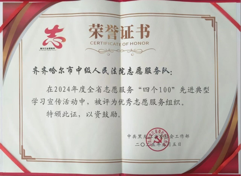 以“鹤法之光”党建品牌为核心,联动群团组织打造特色活动矩阵,实现党建品牌与群团工作深度绑定、互促共进。构建多元活动体系,紧扣重要时间节点,由机关党委统筹协调,团委、工会具体承办,创新开展“沉浸式+多元化”特色活动。深耕主题党日主阵地,联合团委开展“追光三月·学雷锋”“端午爱国传承”等特色主题活动,联合工会组织“致敬‘她力量’”“礼赞劳动者,奋斗最青春”“筑梦灯火万家·礼赞祖国华诞 ”等职工主题活动;丰富文化建设载体,编排《涅槃重生》《晨光》2部法治主题舞台剧,并于全市展演;举办“‘音’为梦‘响’”全市法院青歌赛、全市法院系统首届“鹤法运动会”等文体活动,有效纾解干警压力、凝聚队伍共识;创新全市法院“党课新‘枫’尚·先锋铸法魂”党课擂台赛,推动党建业务理论落地见效。延伸服务触角,制定《齐齐哈尔市中级人民法院志愿服务“1+N”制度规范》,组建185人党员志愿服务队,吸纳青年团员、职工全员参与,深入社区、乡村、学校、企业开展“分众化、场景化”法治宣讲、爱心帮扶等志愿服务110次,累计服务时长超1300小时,覆盖群众一万余人次,切实将司法服务送到群众“家门口”。齐齐哈尔市中级人民法院志愿服务队被评为全省“优秀志愿服务组织”,志愿系列活动被“鹤城机关党建”刊载,形成“党建有引领、群团有作为、服务有实效”的示范效应。
