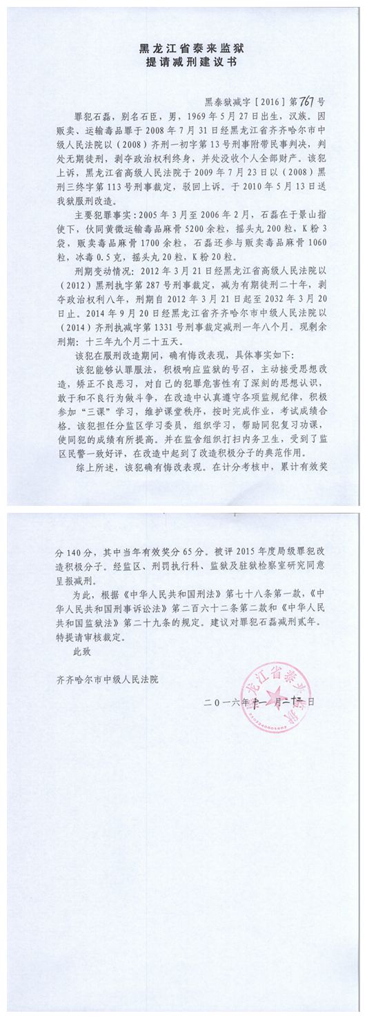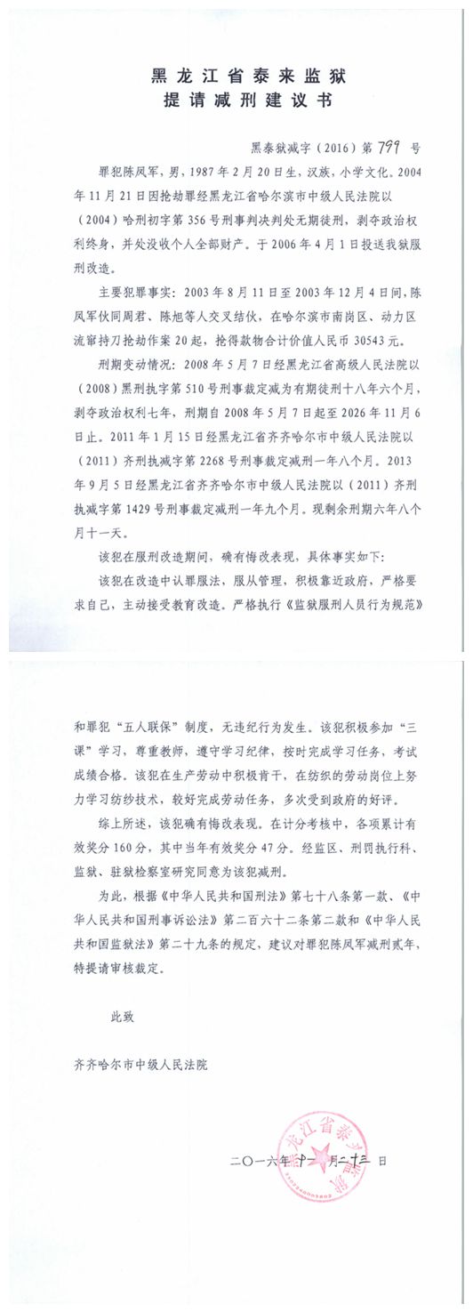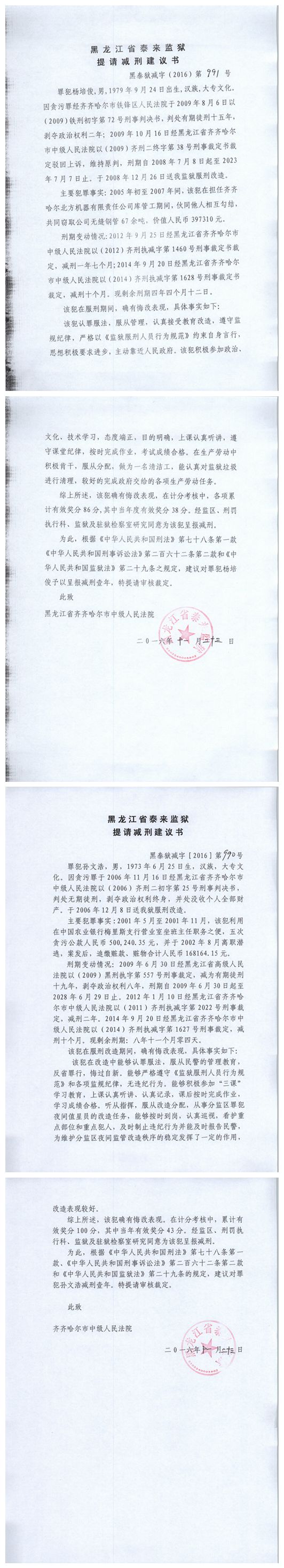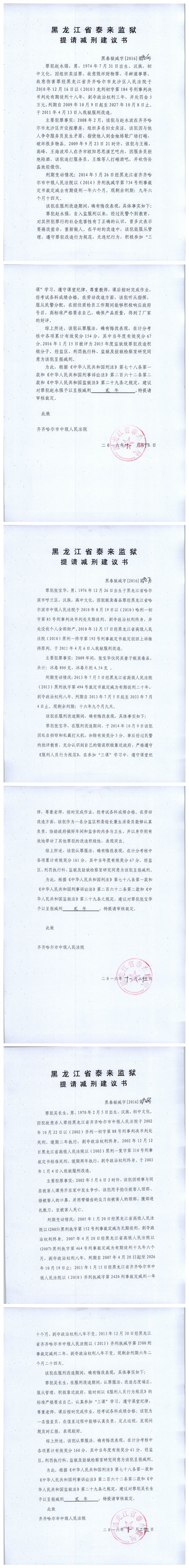 关于黑龙江省泰来监狱提请的罪犯商国瑞等277名罪犯的减刑材料依法向社会公示