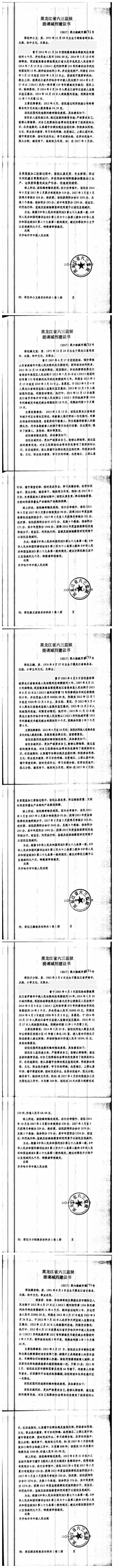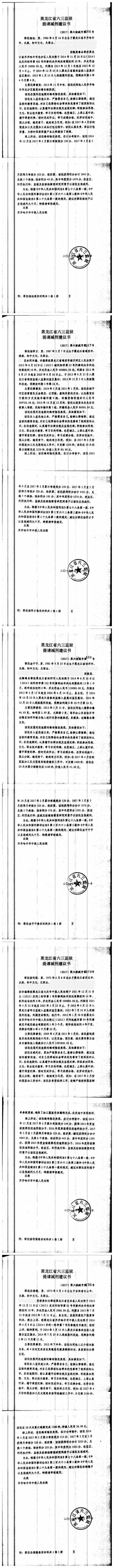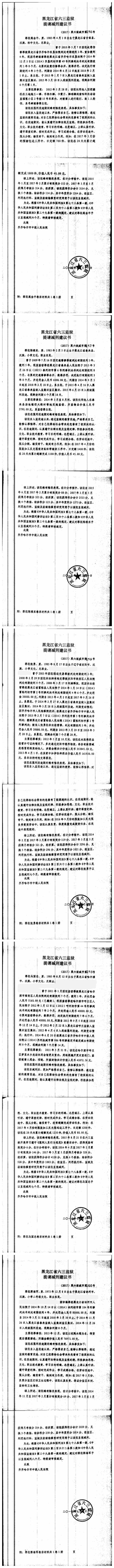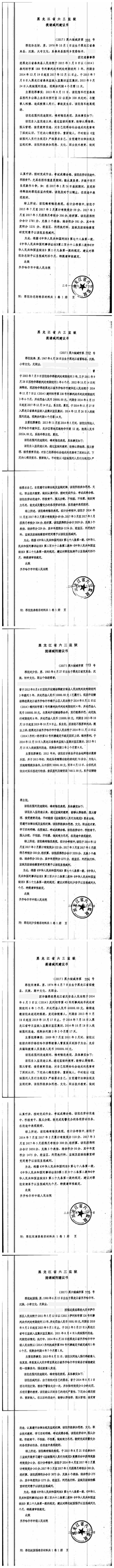 齐齐哈尔市中级人民法院关于六三监狱田立新等220名服刑人员减刑材料公示