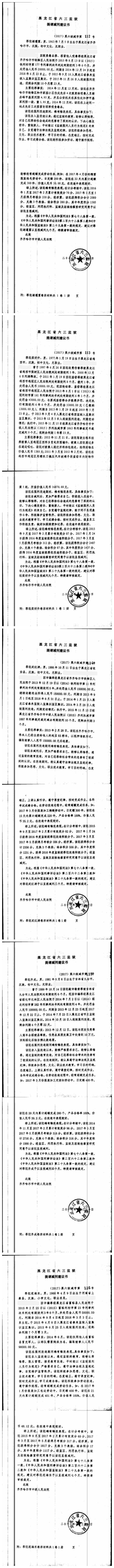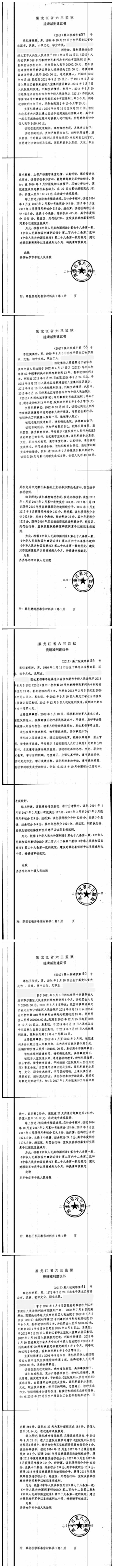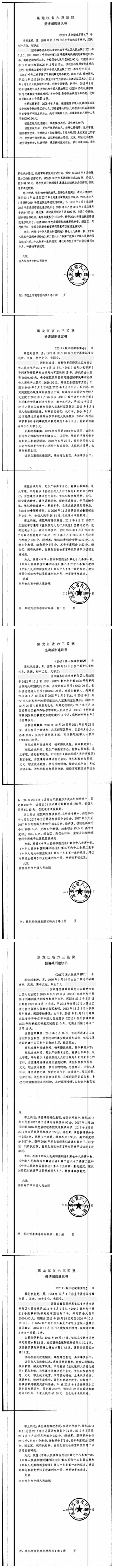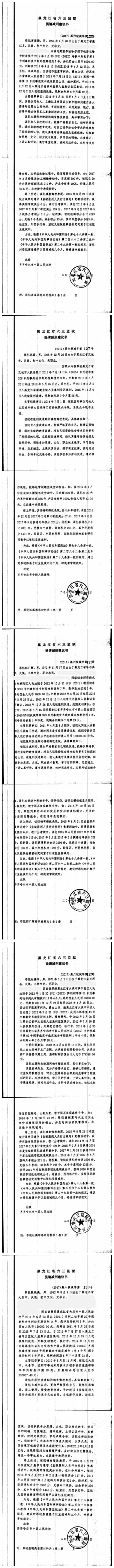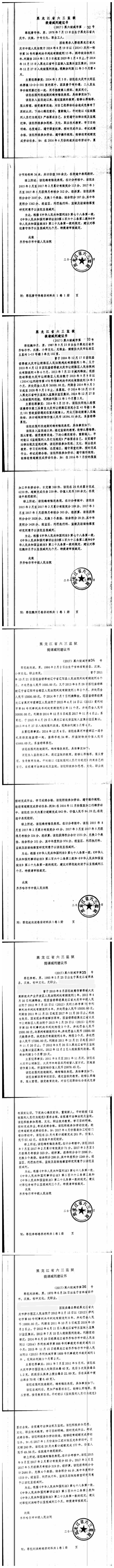 齐齐哈尔市中级人民法院关于六三监狱田立新等220名服刑人员减刑材料公示