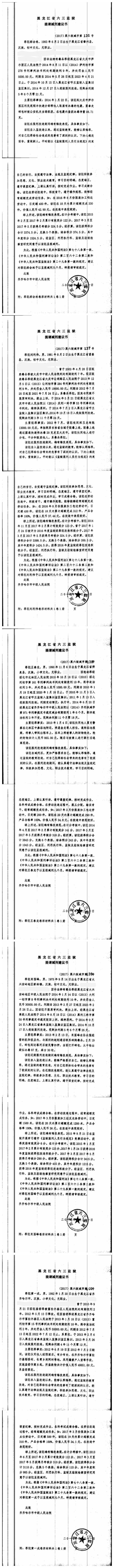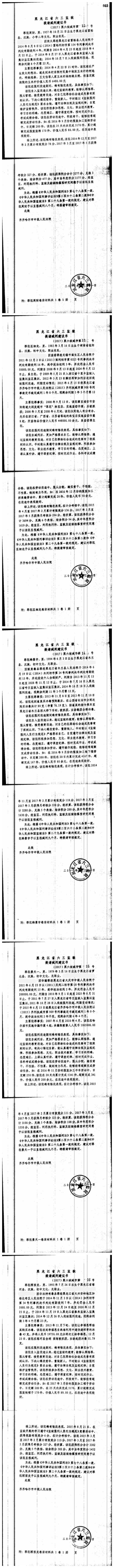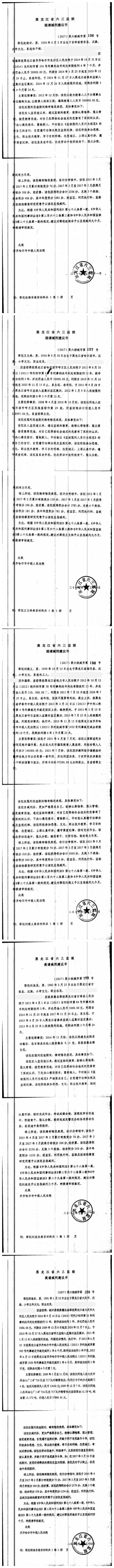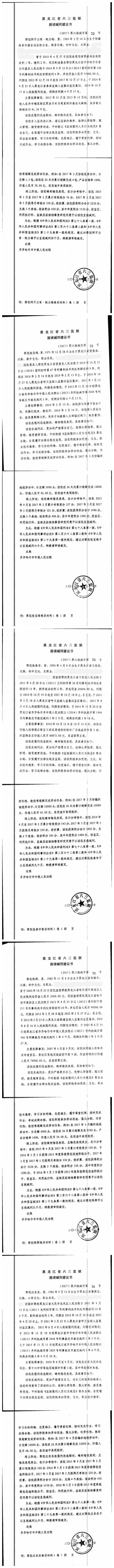 齐齐哈尔市中级人民法院关于六三监狱田立新等220名服刑人员减刑材料公示