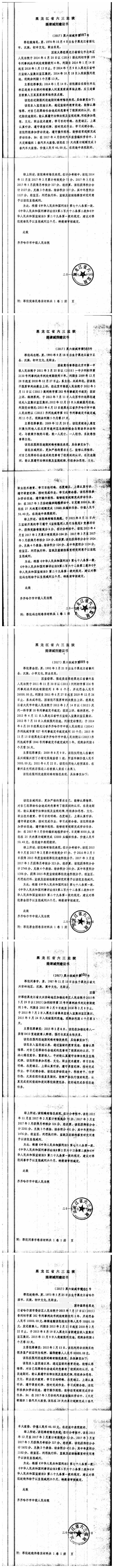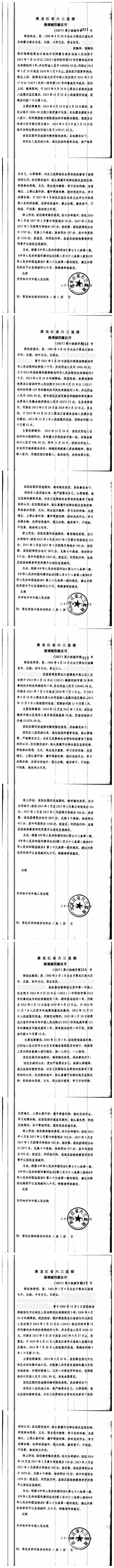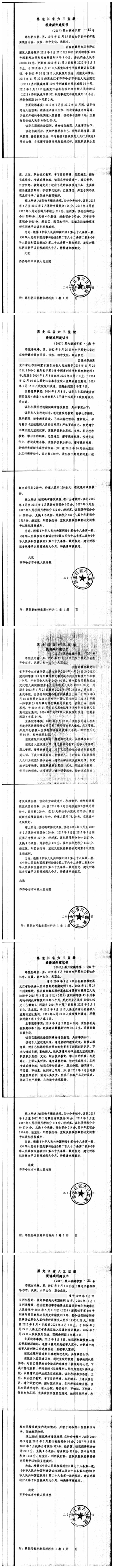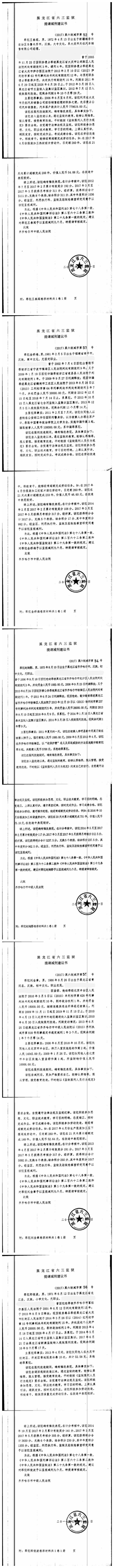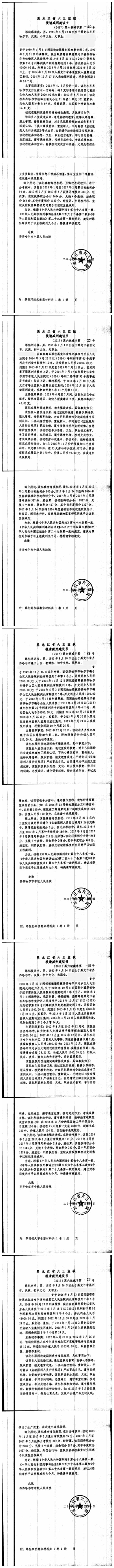 齐齐哈尔市中级人民法院关于六三监狱田立新等220名服刑人员减刑材料公示