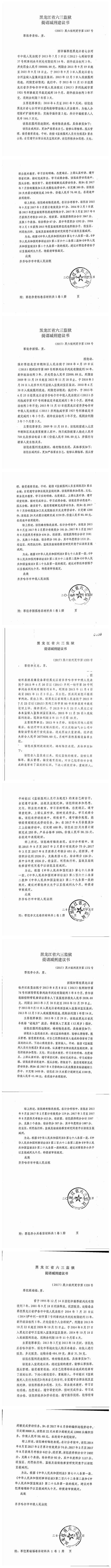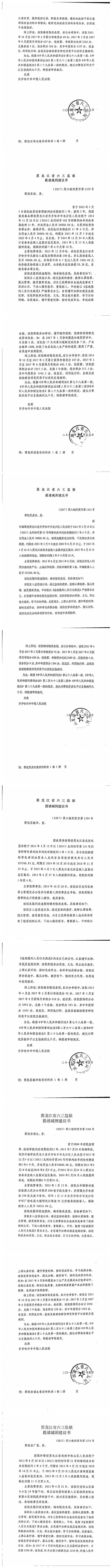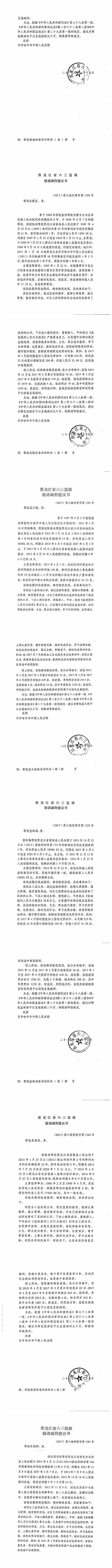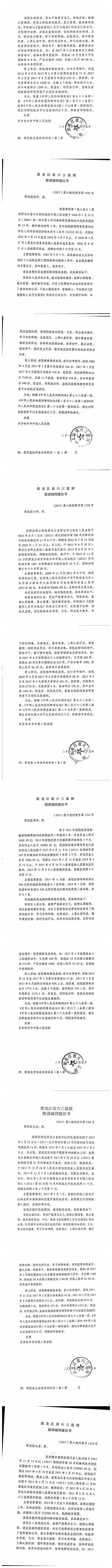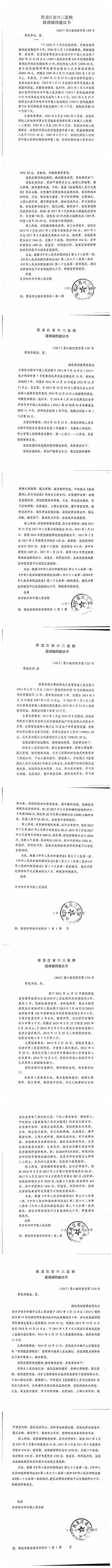 关于黑龙江省六三监狱报请的韩德刚等172名服刑人员的减刑、假释材料依法公示