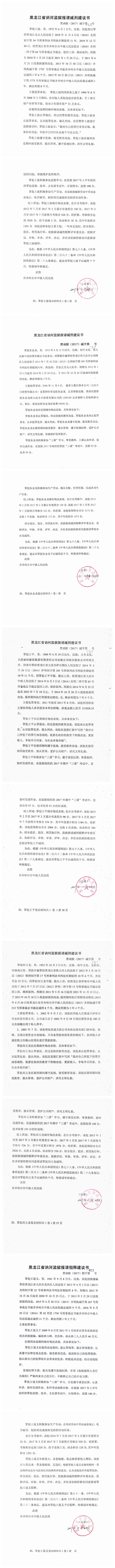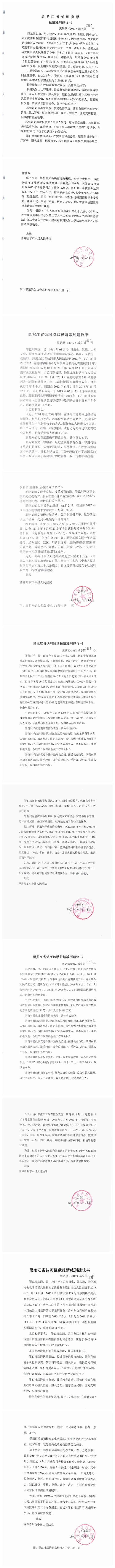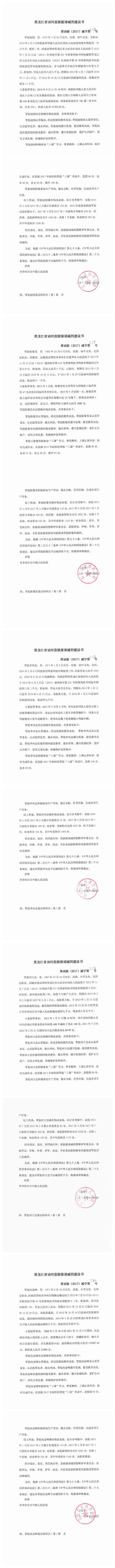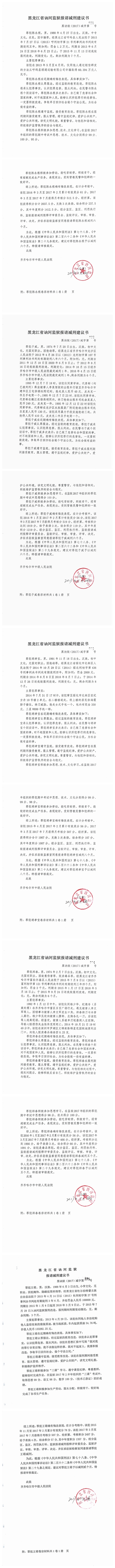 齐齐哈尔市中级人民法院关于公示田海涛等服刑人员减刑、假释材料的公告