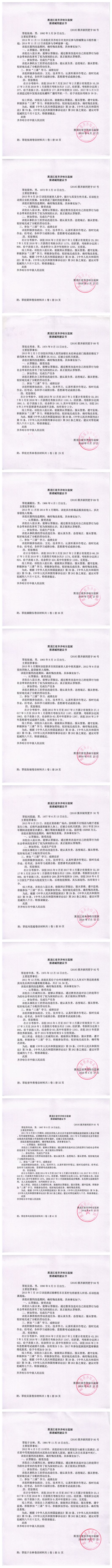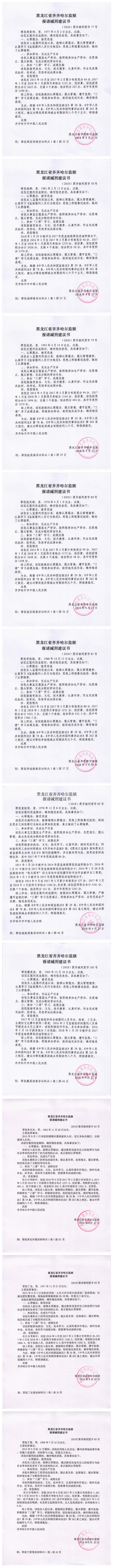 齐齐哈尔市中级人民法院关于公示吴福林等190服刑人员减刑、假释材料的公告