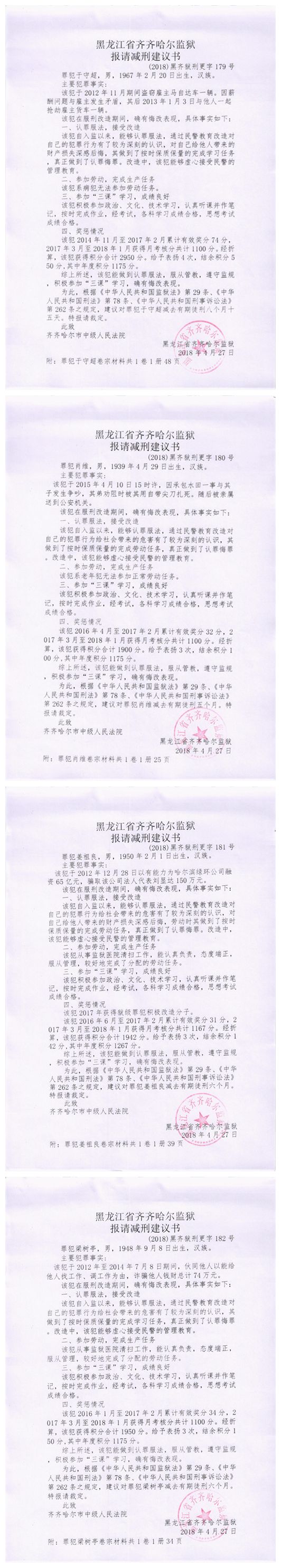 依照《最高人民法院关于减刑、假释案件审理程序的规定》第三条的规定,现将吴福林等190服刑人员的减刑材料依法向社会公示,公示期限为五日(自2018年5月22日至2018年5月27日)。如对上述服刑人员减刑有异议,可以通过电话或信函等方式向齐齐哈尔市中级人民法院审监一庭反馈。