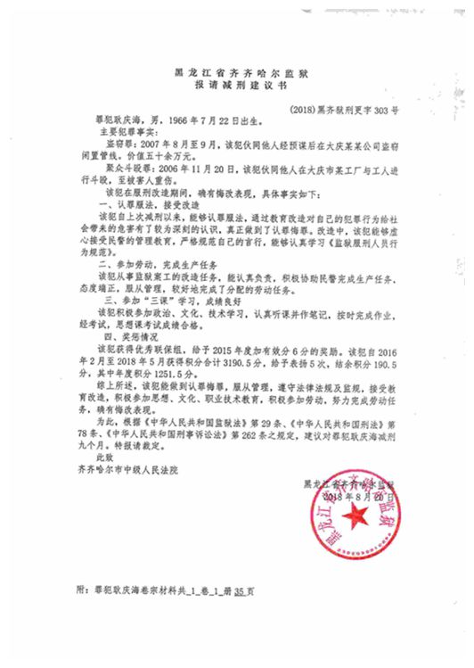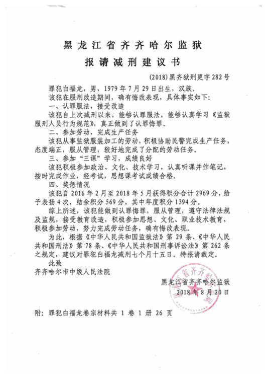 齐齐哈尔市中级人民法院关于齐齐哈尔监狱报请于迪等179名服刑人员的减刑假释材料公示