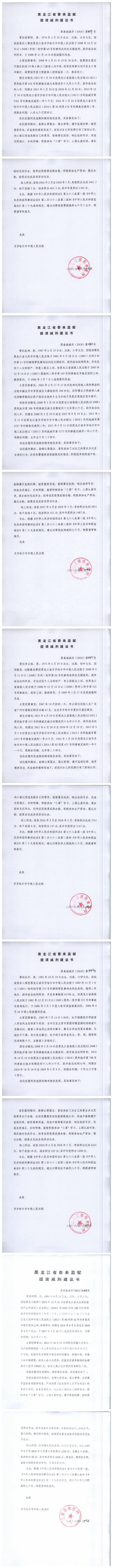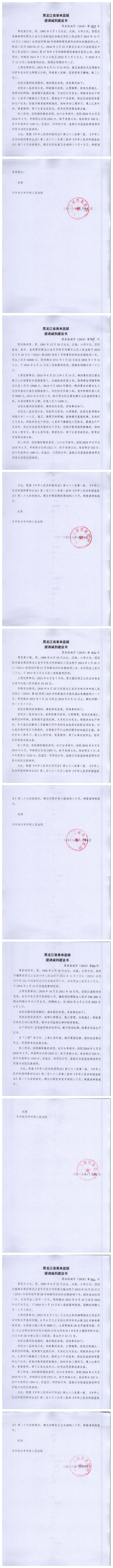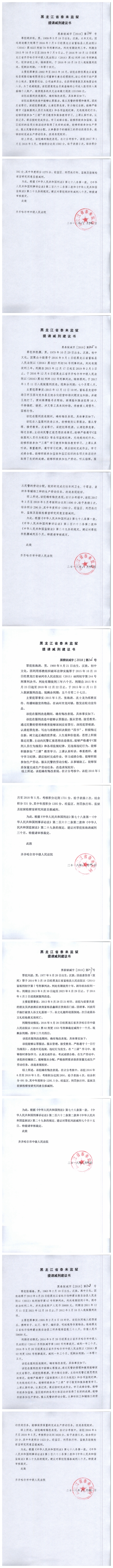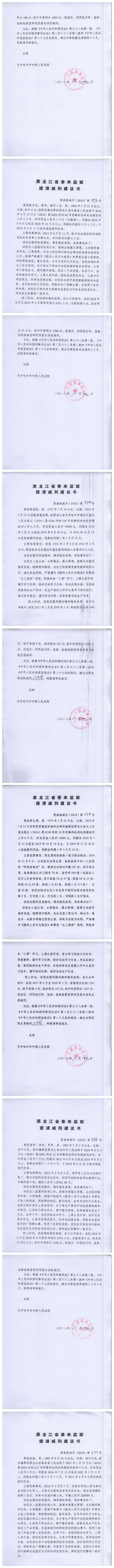 齐齐哈尔市中级人民法院关于泰来监狱金彦鑫等422名服刑人员的减刑、假释材料公示