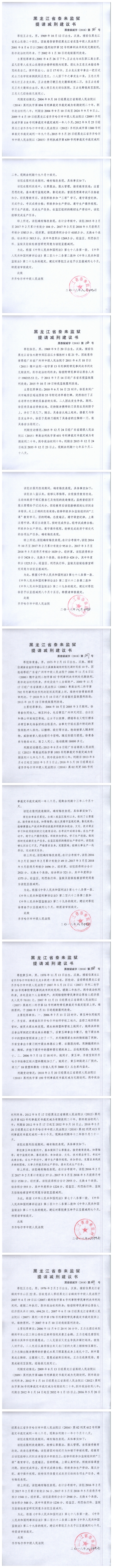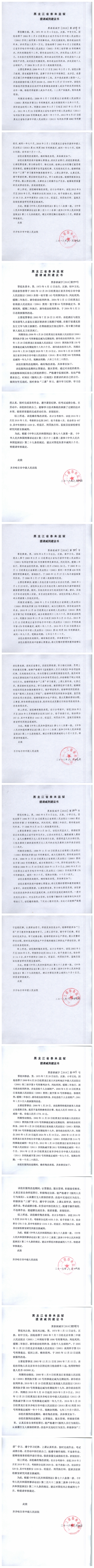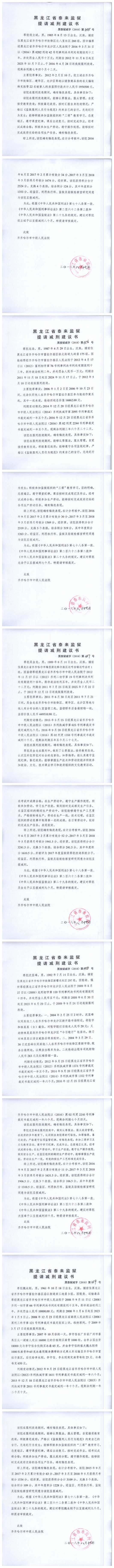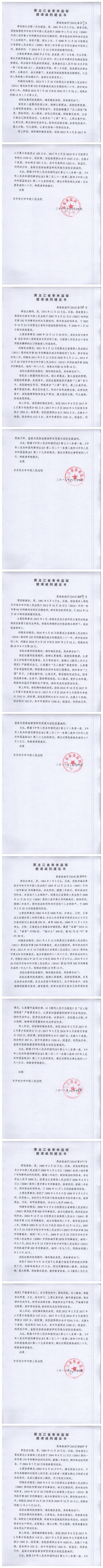 齐齐哈尔市中级人民法院关于泰来监狱金彦鑫等422名服刑人员的减刑、假释材料公示