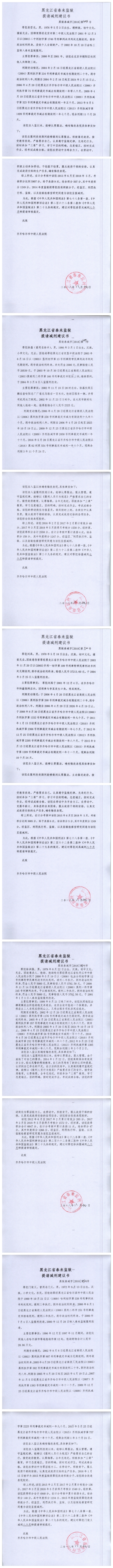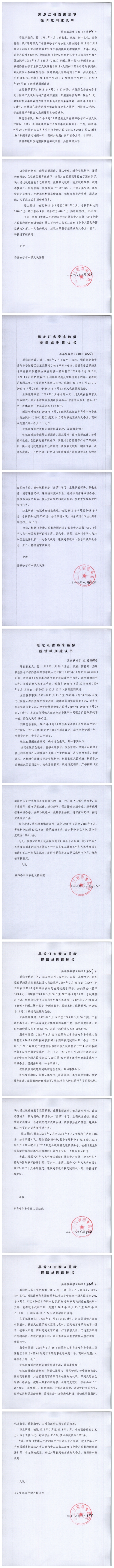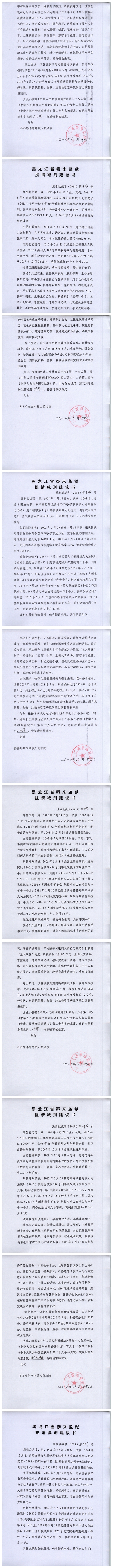 依照《最高人民法院关于减刑、假释案件审理程序的规定》第三条的规定,现将金彦鑫等422名服刑人员的减刑假释材料依法向社会公示,公示期限为五日(自2018年9月6日至2018年9月10日)。如对上述服刑人员减刑、假释有异议,可以通过电话或信函等方式向齐齐哈尔市中级人民法院审监一庭反馈。